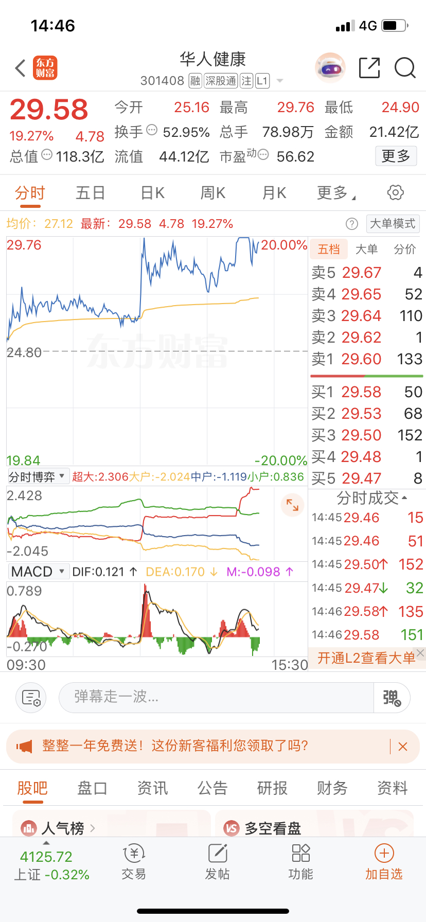华人健康大盘跳水逆市上涨快封板了华人涨停了你还在晃