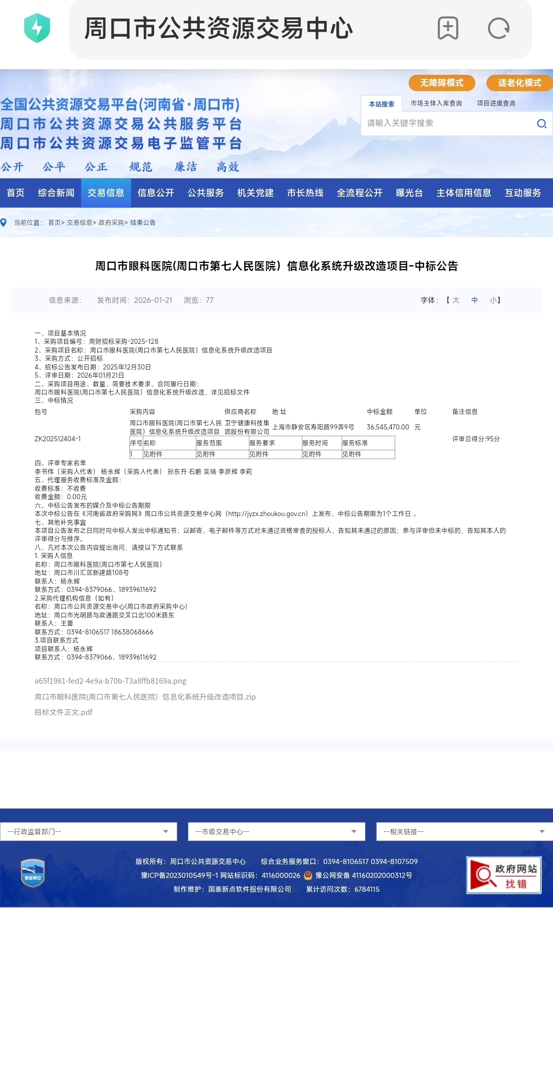 $卫宁健康(SZ300253)$ http://jyzx.zhoukou.gov.cn 中标3654.55万元