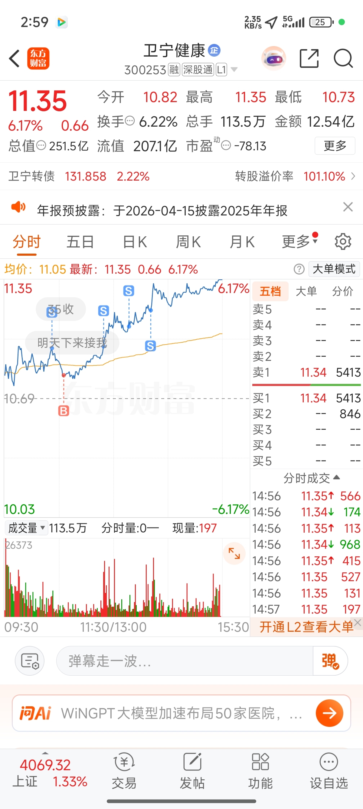 $卫宁健康(SZ300253)$ 各位大佬,我明天还能接回来吗?