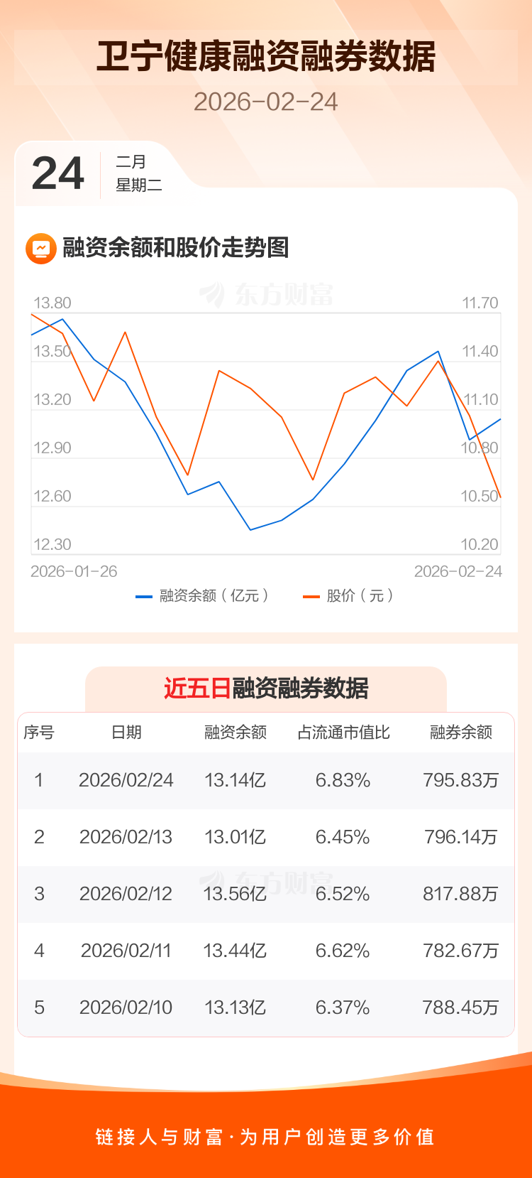 交易所最新数据显示,卫宁健康于2026年2月24日获融资买入1.53亿元,融资偿还1.39亿元,当日融资净买入1337.96万元。目前,该股融资余额13.14亿,占流通市值比例为6.83%。