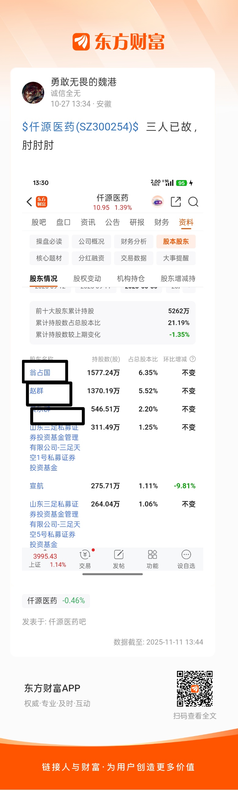 $仟源医药(SZ300254)$  三人已故,肘肘肘