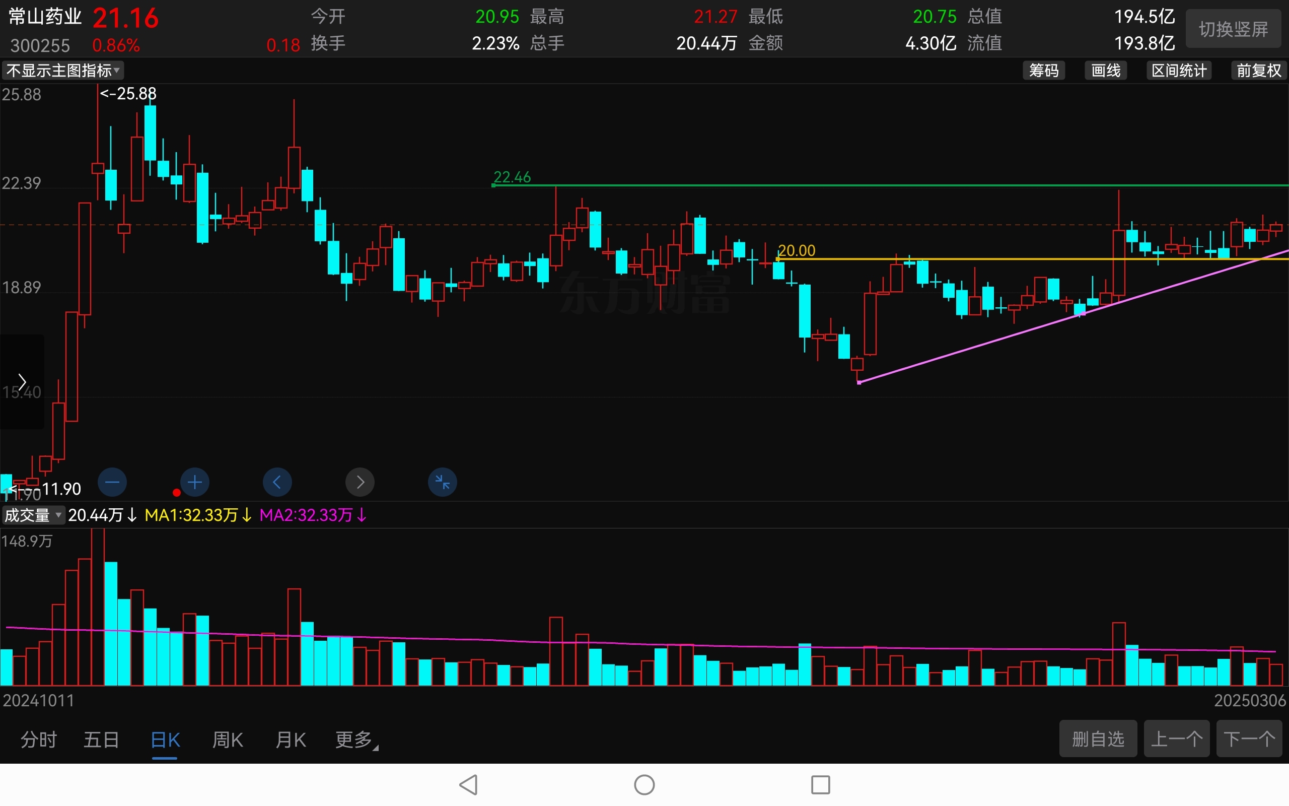 $常山药业(SZ300255)$ 重新修正压力位,20.97已不够成压力