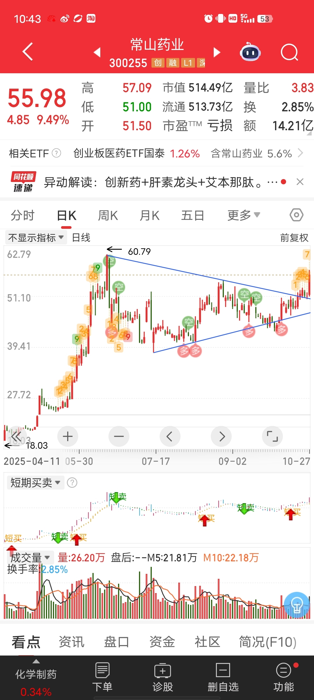 $常山药业(SZ300255)$ 标准的旗形整理(三角行)突破,下一个有压力的位置就是前期高点了!