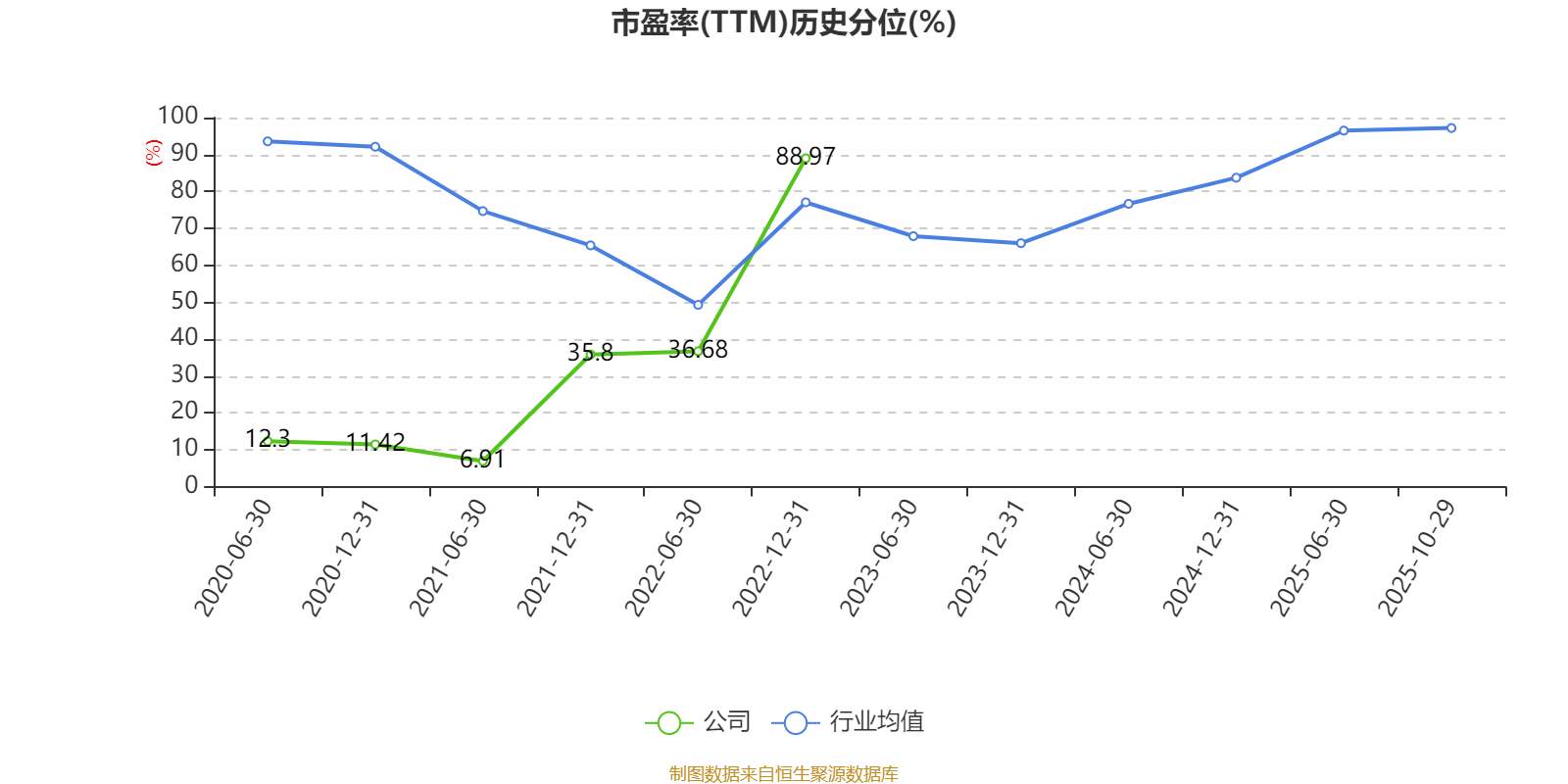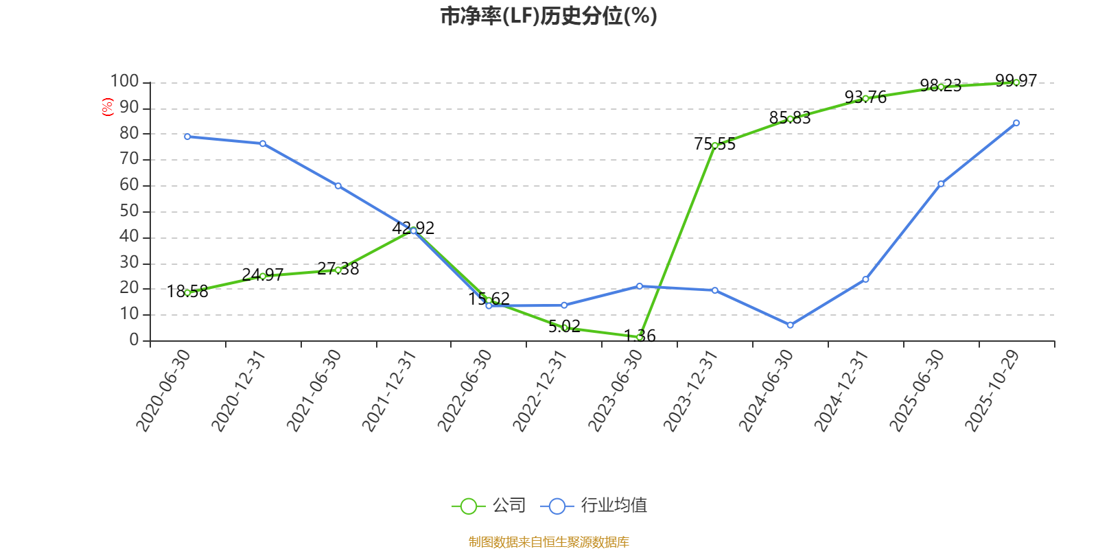 市盈率、市净率为负时,不显示当期分位数,会导致折线图中断。