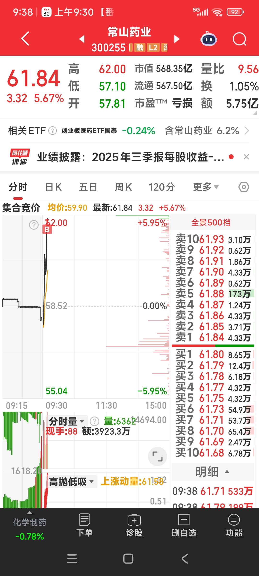 $常山药业(SZ300255)$ 突破历史新高,从外面转进来了点资金买入!