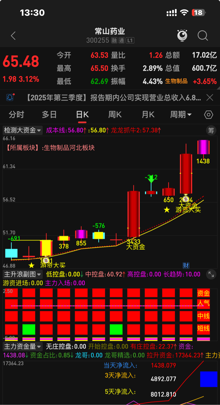 $常山药业(SZ300255)$ 主哩控盘很好,