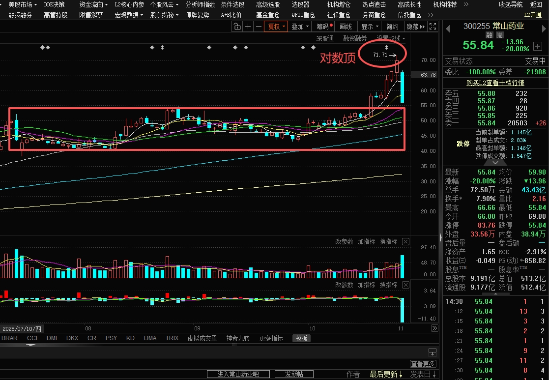 $常山药业(SZ300255)$ 71.71对数顶啊
