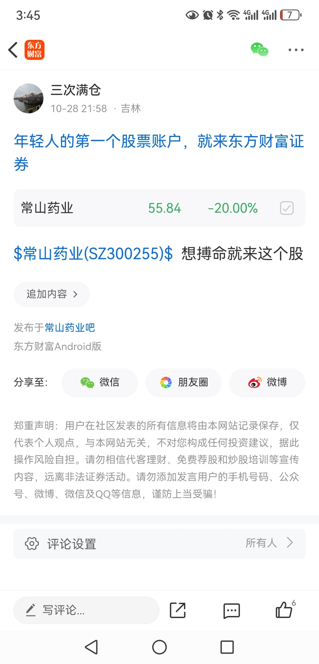 温馨提示: 1.根据《证券法》规定,禁止编造、传播虚假信息或者误导性信息,扰乱证券市场;2.用户在本社区发表的所有资料、言论等仅代表个人观点,与本网站立场无关,不对您构成任何投资建议。用户应基于自己的独立判断,自行决定证券投资并承担相应风险。《东方财富社区管理规定》