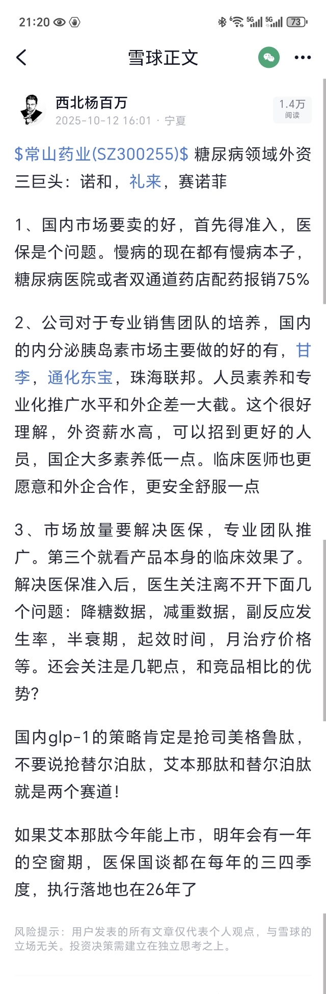 $常山药业(SZ300255)$ $海南海药(SZ000566)$ 还是要慎重一点,资金怼起来的,资金撤退后,就退潮了,等药物上市,但是如果无法有效放量,没有市场,抢夺不了竞品,无法改善营收利润,目前的估值还是很高的。创新药最终还要回归临床
