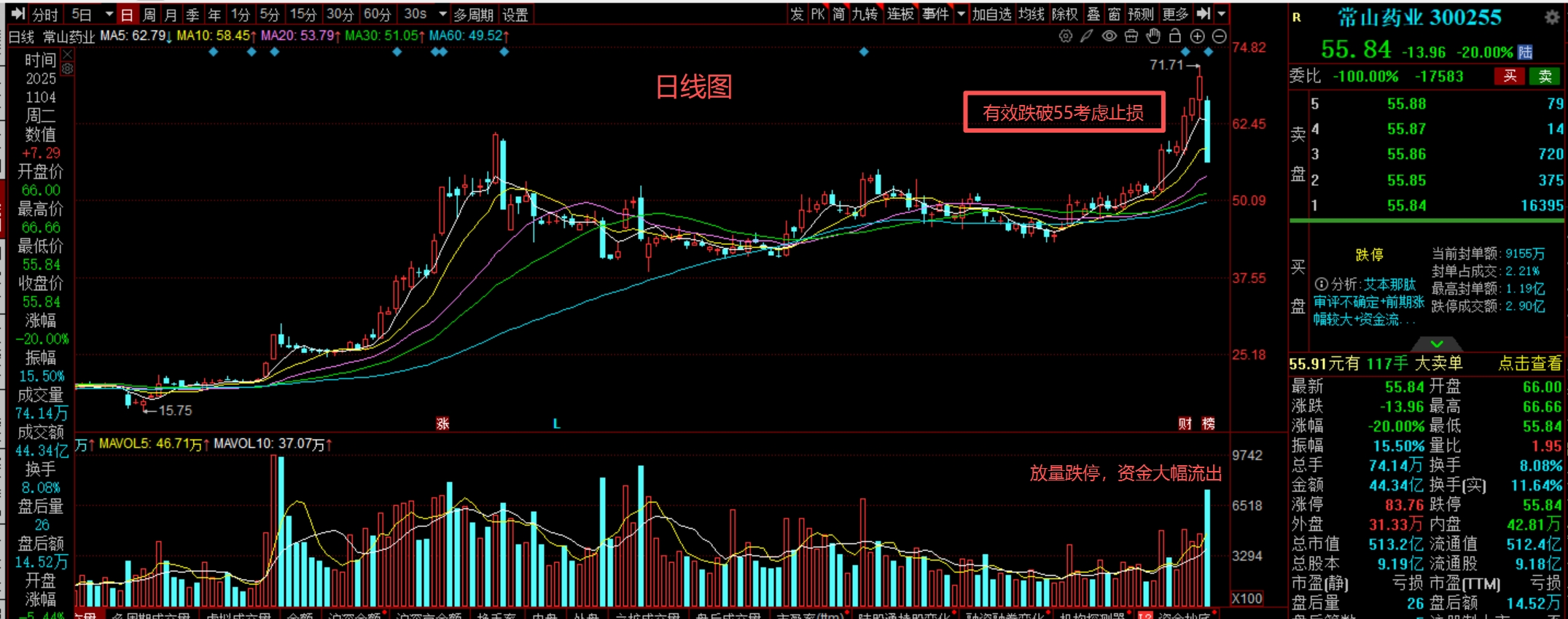 今日放量跌停,股价跌破所有短期均线支撑,龙虎榜显示资金大幅流出。当前关键看55元