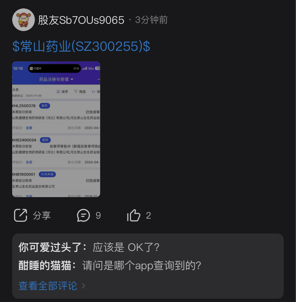 $常山药业(SZ300255)$ 咋删了?真的假的?审批完成普天同庆
