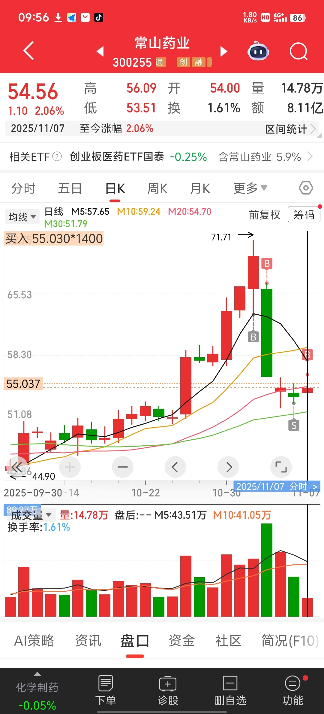 $常山药业(SZ300255)$ 被主力玩的死死的,70进,53出,55又进