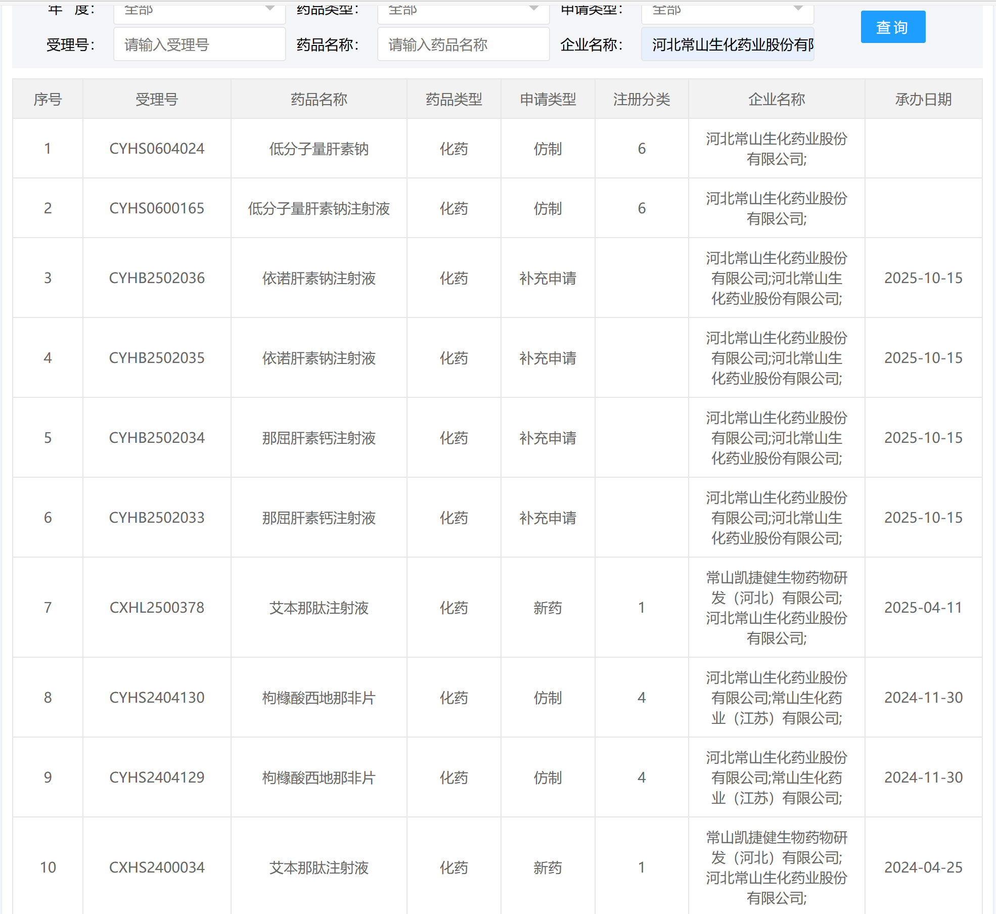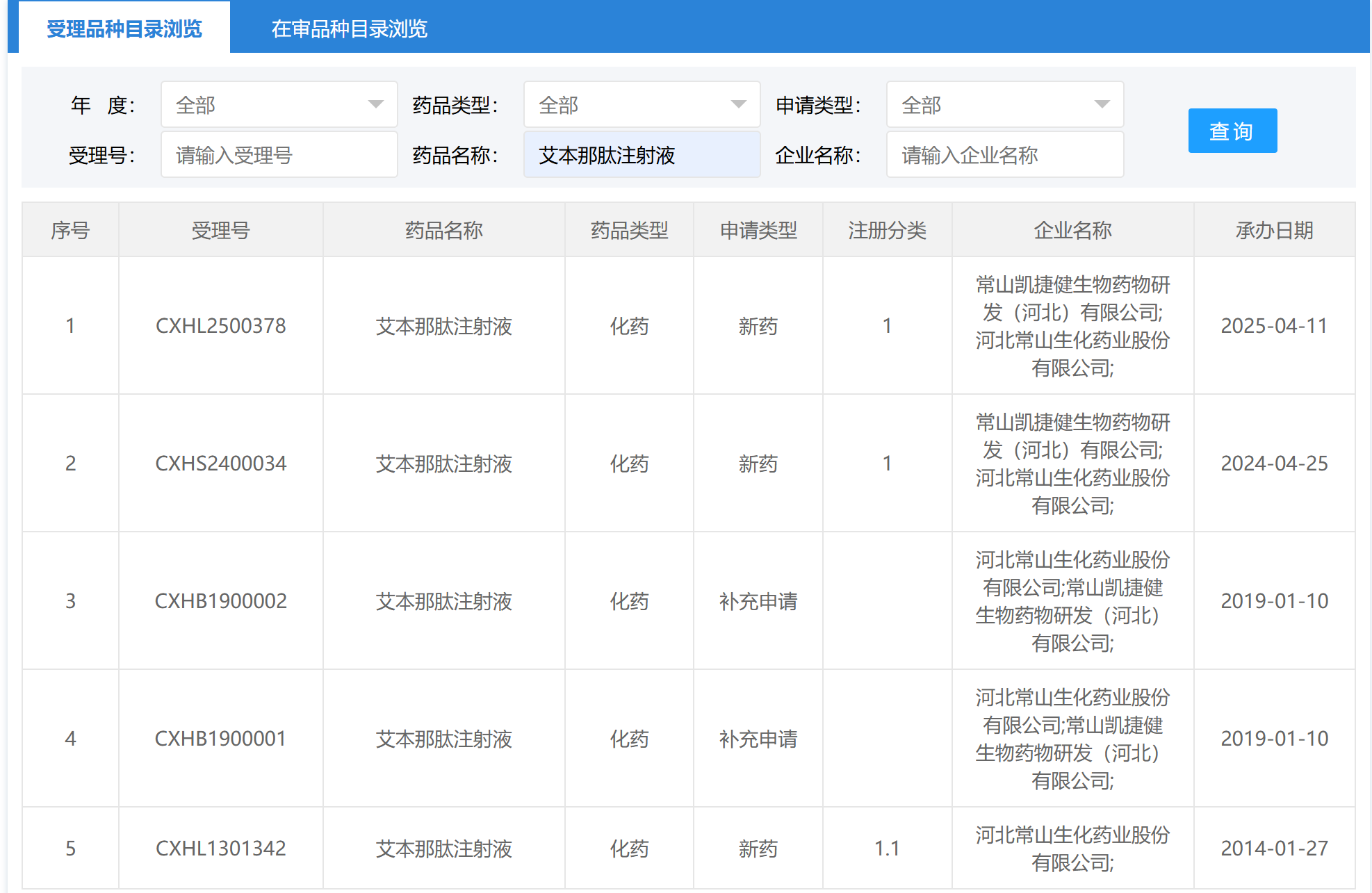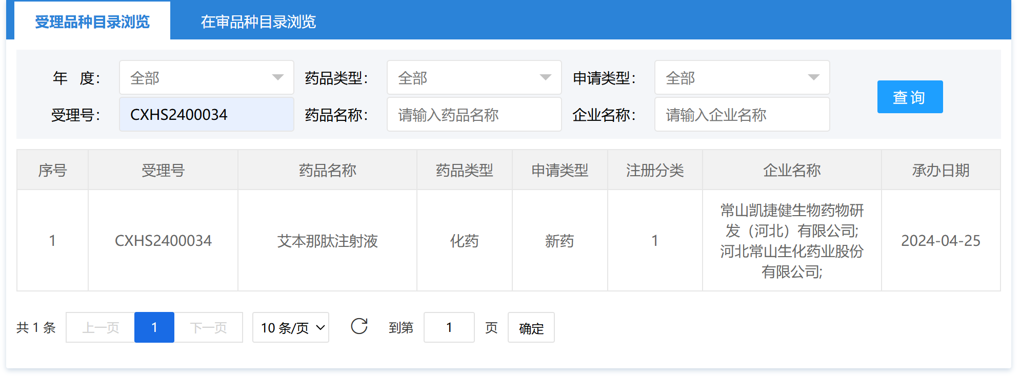 前几天,单独输入药品名称和企业名称,不显示任何信息,只有输入受理号才有信息。