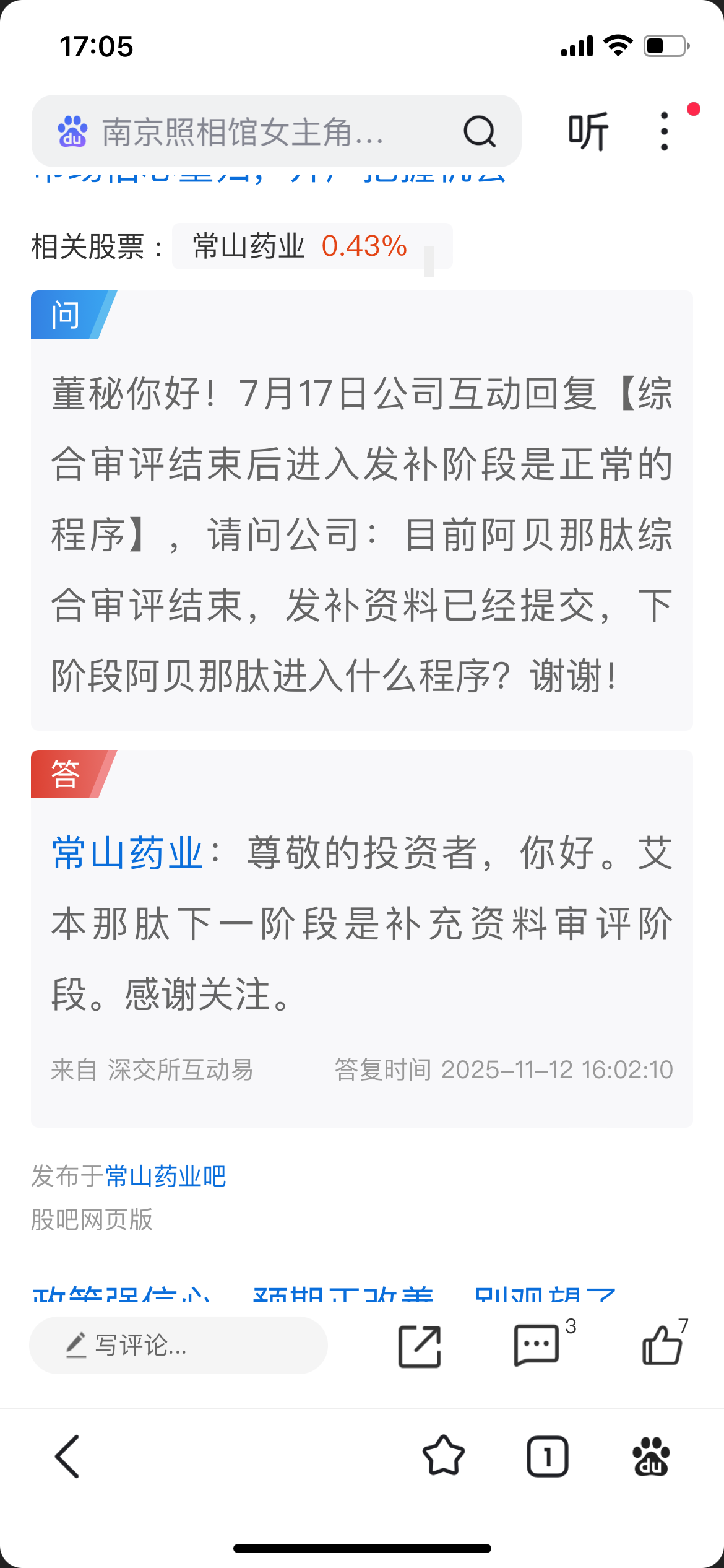 常山药业:尊敬的投资者,你好。基于对药品审评工作的了解,主要是为了避免引起投资者误解短期即可进入公示阶段。感谢关注。