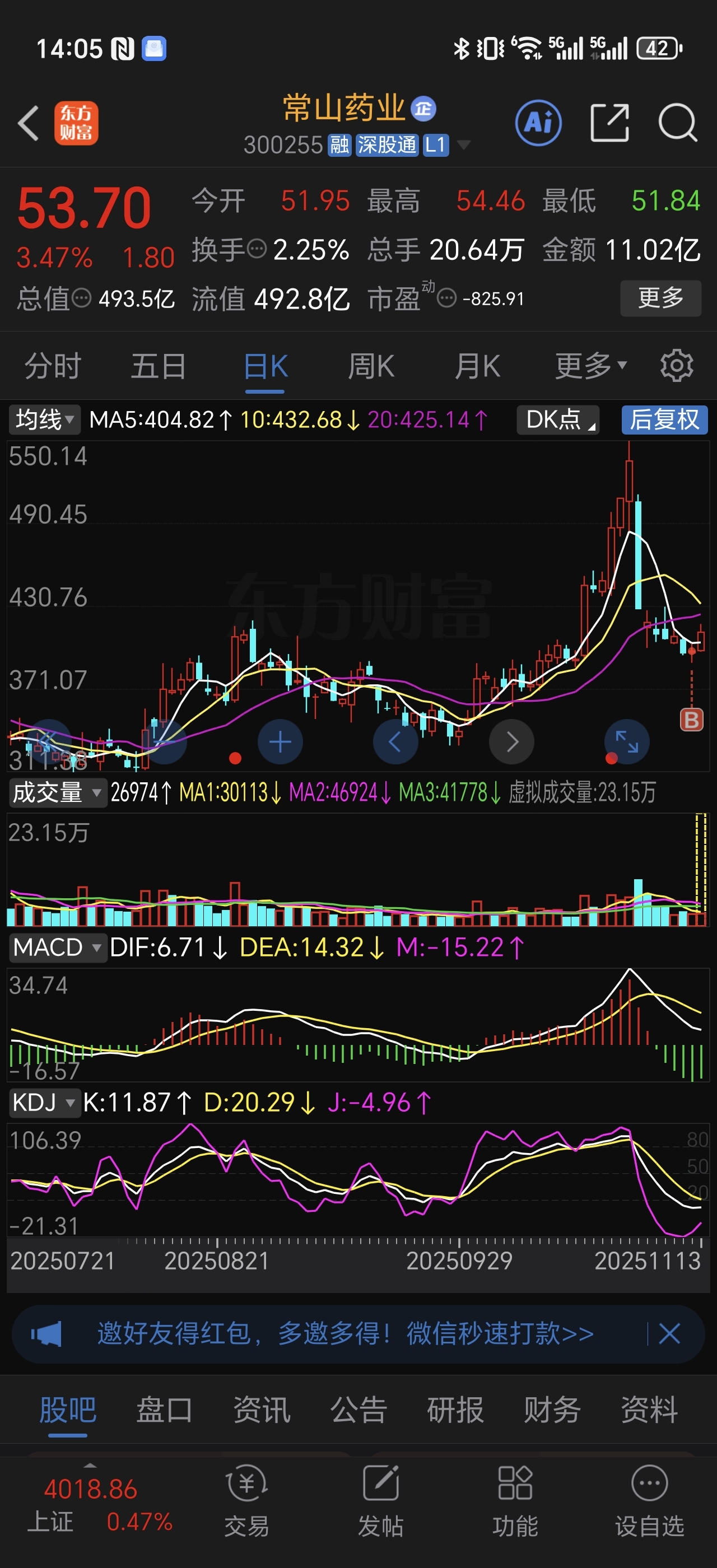 $常山药业(SZ300255)$ 54.46一定不是今天的最高点,有没有神奇的两点半