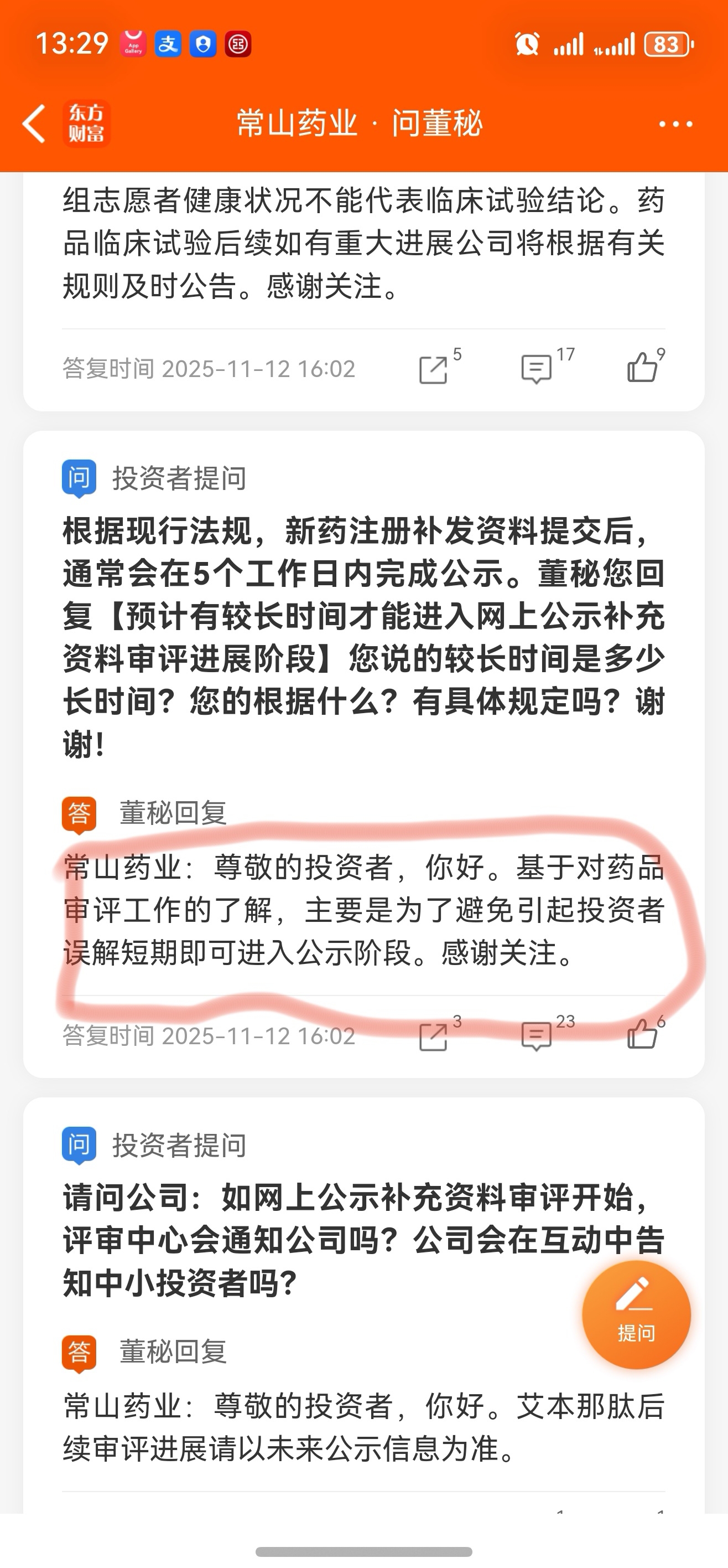 $常山药业(SZ300255)$ 董秘强调要较长时间进入公示,带有自己很强的主观性,公示时间长短,不是交由药监局来审评决定么?董秘这解释,大家怎么看?