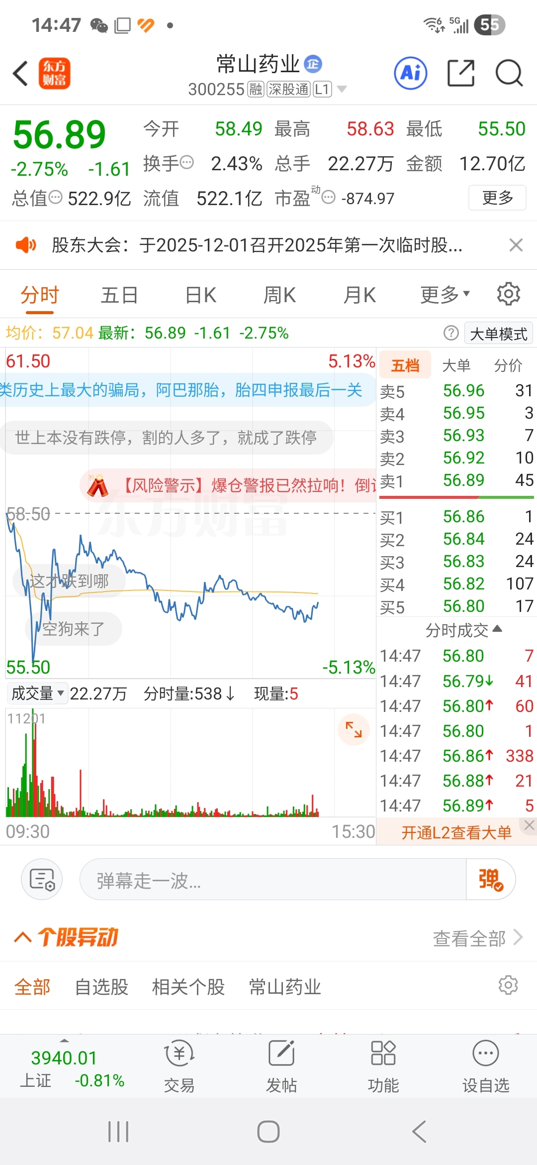 $常山药业(SZ300255)$ 尾盘空狗那么猖狂吗?