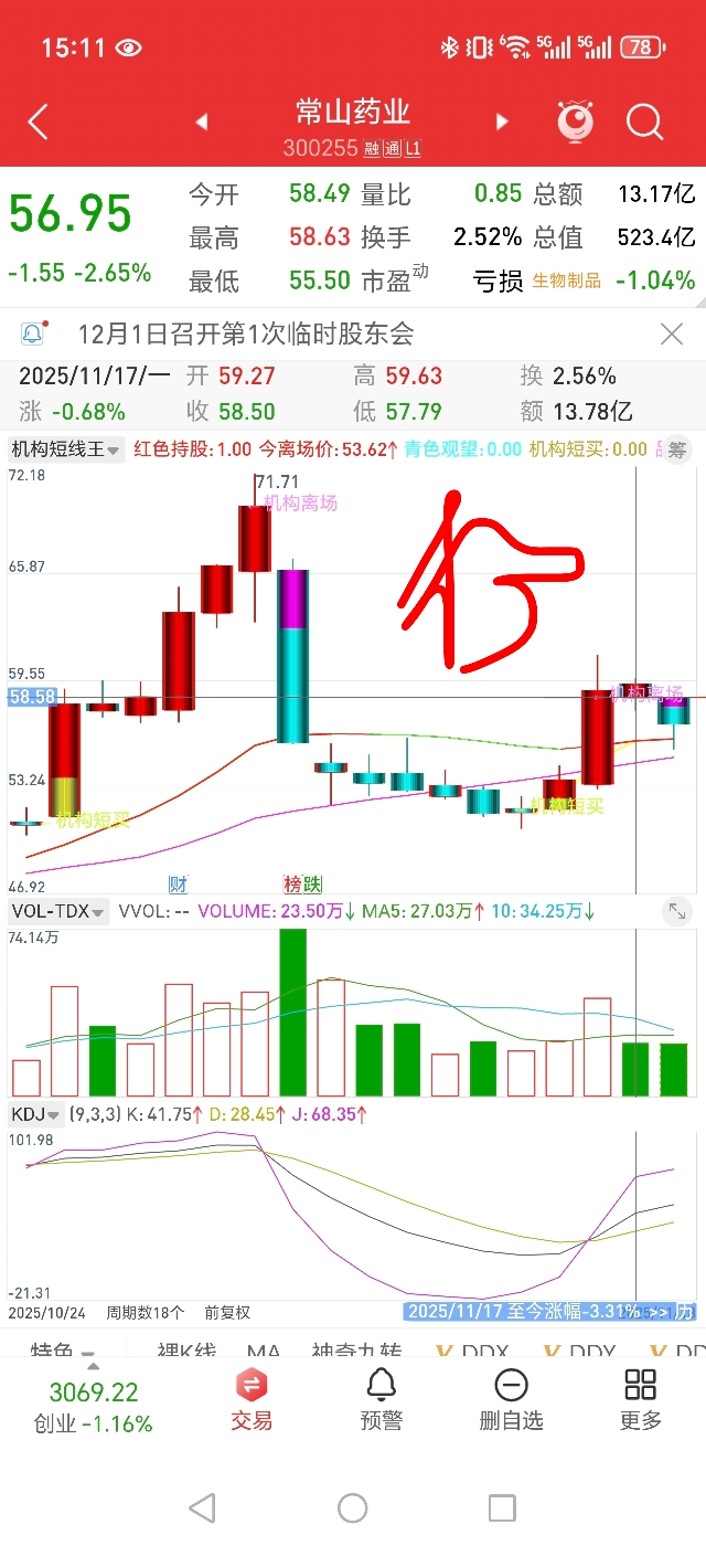大盘不景气,子龙两连跌,58.58位置行程形成对子压力位