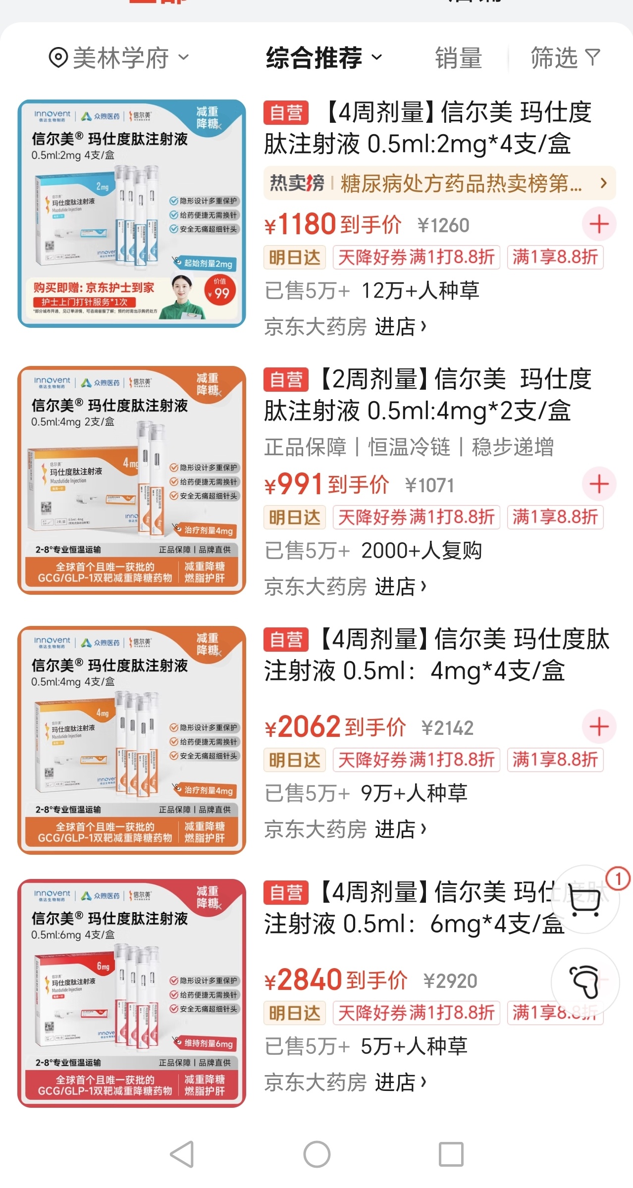 看看京东药房两个今年上市国产GLP-1的销情况:依苏帕格鲁肽:1W盒+玛仕度肽: