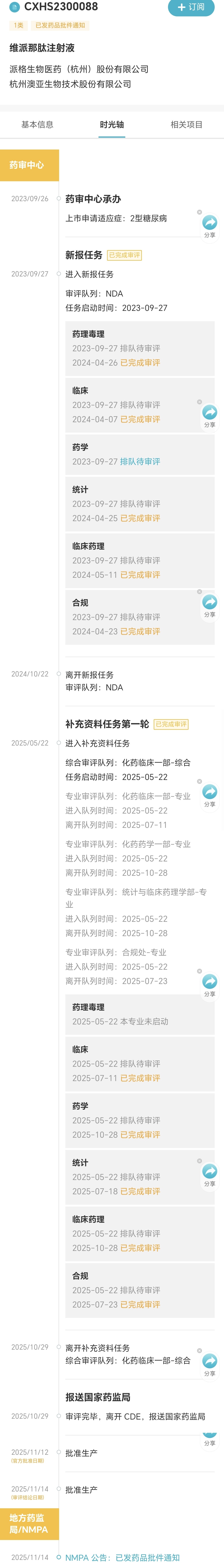$常山药业(SZ300255)$ 其一,维派那肽确信是上市了,那些说只是获批上市申请,不是获批上市的说法完全是侮辱大家的智商,请问2者有何不同? 纯属自己语文没学好!其二,维派那肽为何先获批?因为它本来就比阿贝那肽早7个月申请,先获批很正常。同时也说明阿贝那肽的获批时间不能说太长,正常范围内。其三,其它GLP-1药物的相继获批不是坏事,说明这个赛道的药物已经相当成熟,阿贝那肽的获批也一定是必然的,已无悬念。