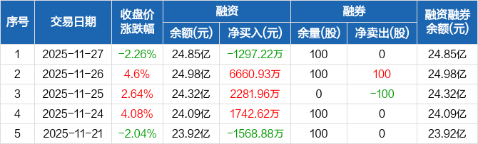 常山药业:融资净偿还1297.22万元,融资余额24.85亿元(11-27)