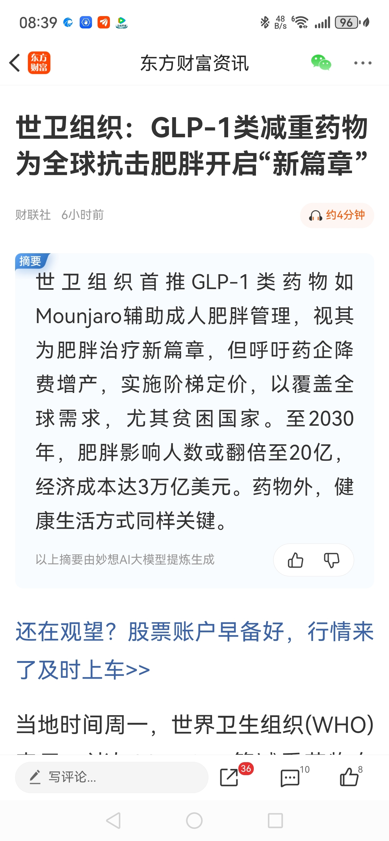 虽然今年9月份,世卫组织已将GLP-1药物列入糖尿病治疗的基本药物目录,但当时尚