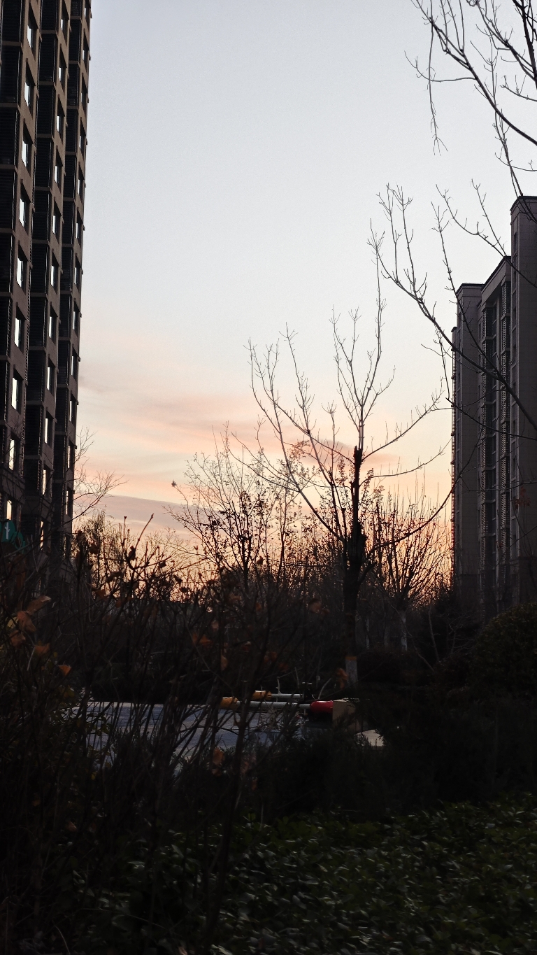 西江月·冬晓祝股红寒晓无风凝寂,遥天漫笼轻纱。丹青浅淡染晨霞,恰似仙裙飘洒。万籁