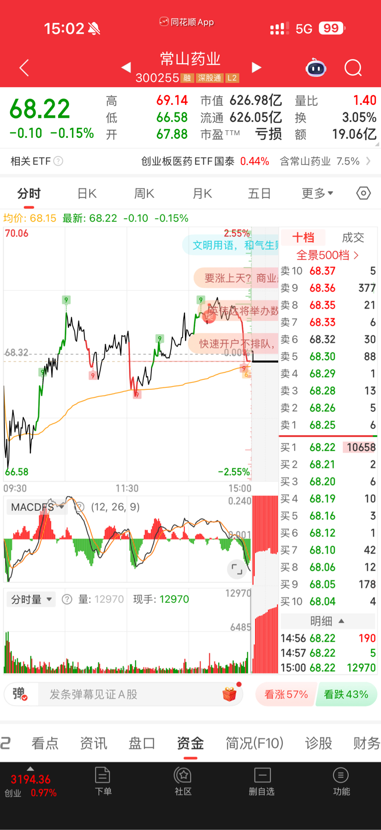 $常山药业(SZ300255)$ 尾盘这么大的量,怎么看各位?