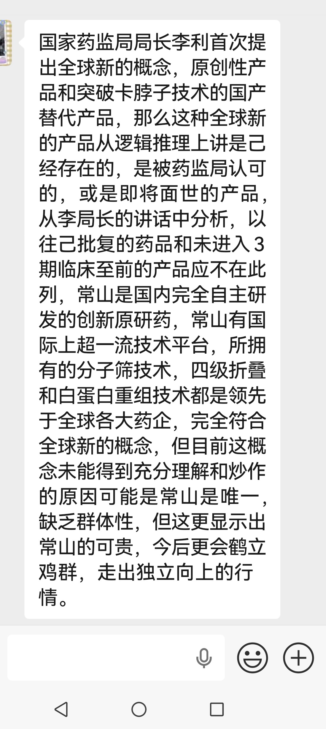 $常山药业(SZ300255)$ 药监局长李利提出全球新的概念,我在和朋友聊天中提出自已的见解想法。