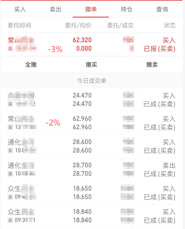 看了下仓,设置了-2%买入触发了。但是-3%没有触发,有点遗憾。