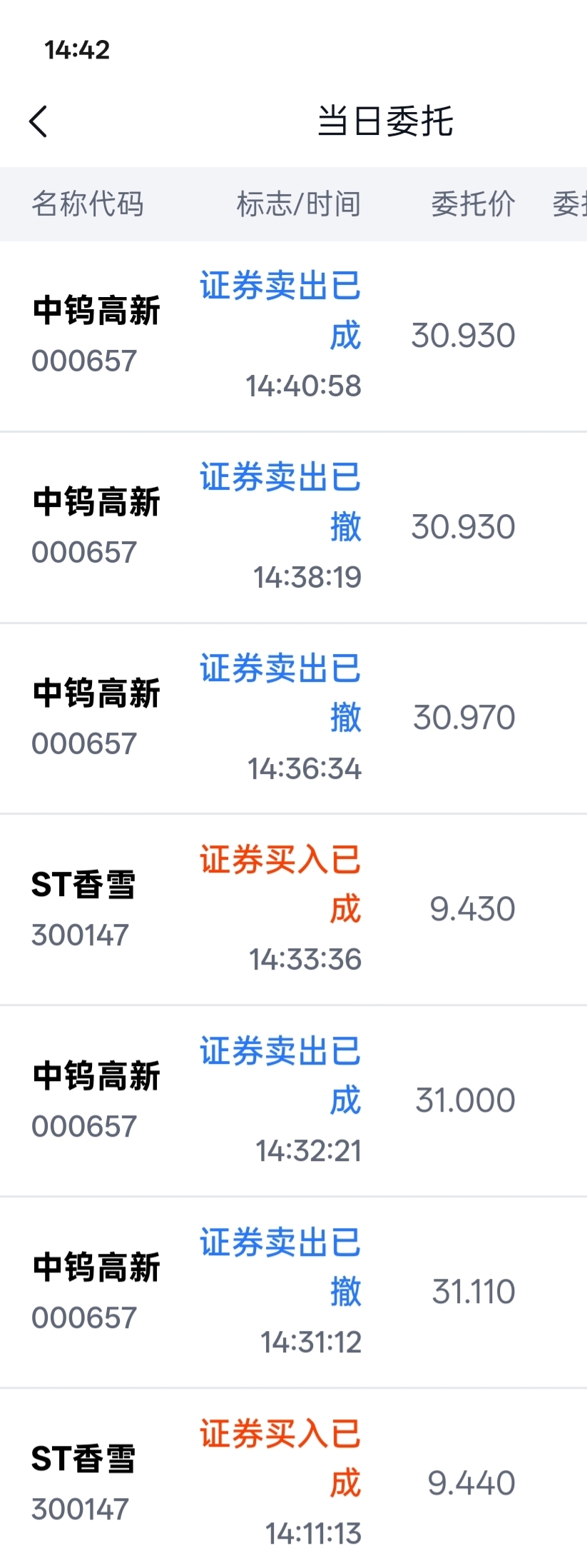 我就回来看看,我出去以后在中钨高新和航天发展赚了58%了。