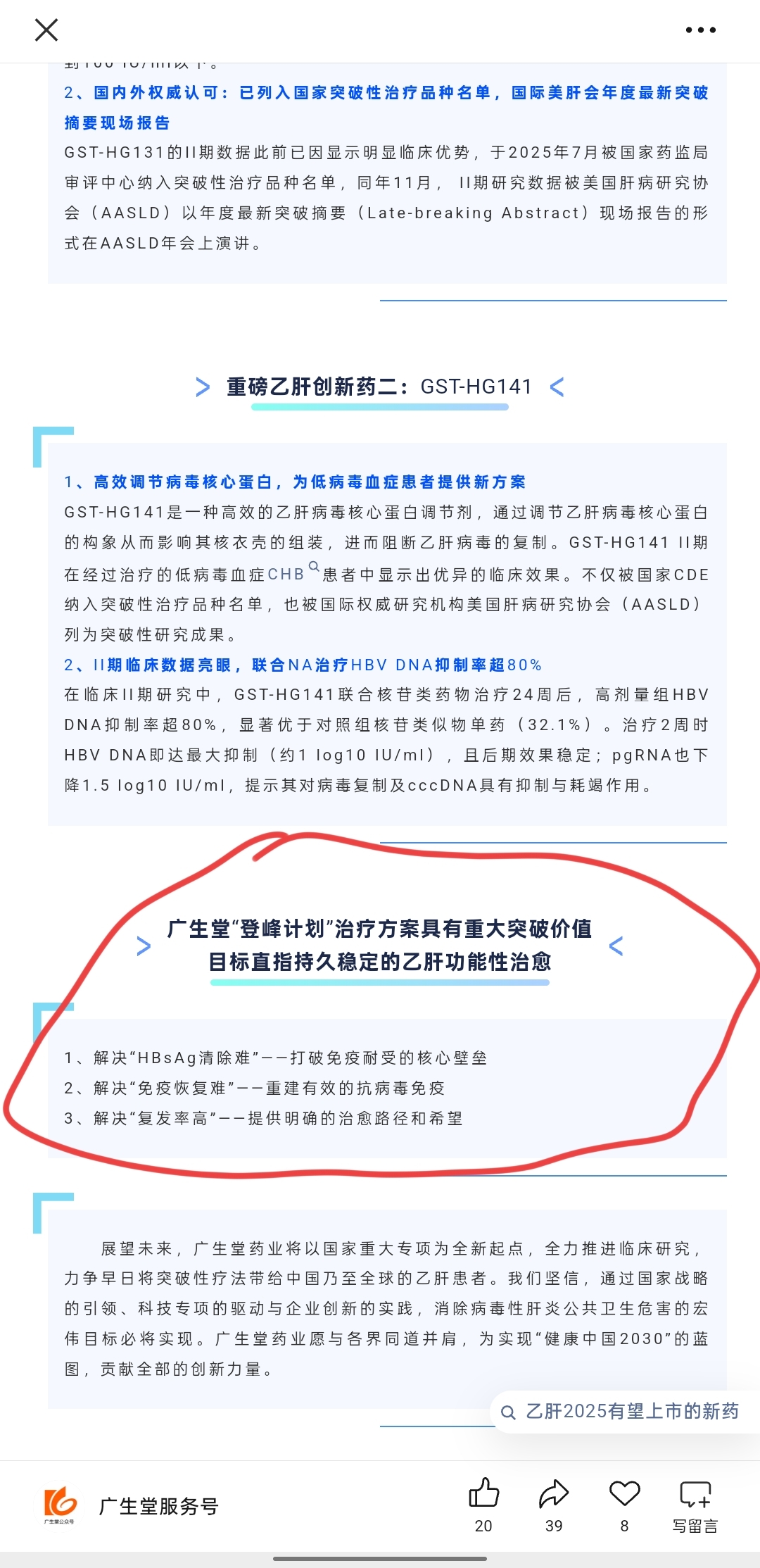 $平潭发展(SZ000592)$ $锋龙股份(SZ002931)$ $创新医疗(SZ002173)$ $广生堂消灭乙肝国家科技重大专项极大提升广生堂全球创新药临床研究进程和价值认可,响应国家乙肝防治规划蓝图蓄力全球乙肝治愈2亿肝患者福音,估值千亿