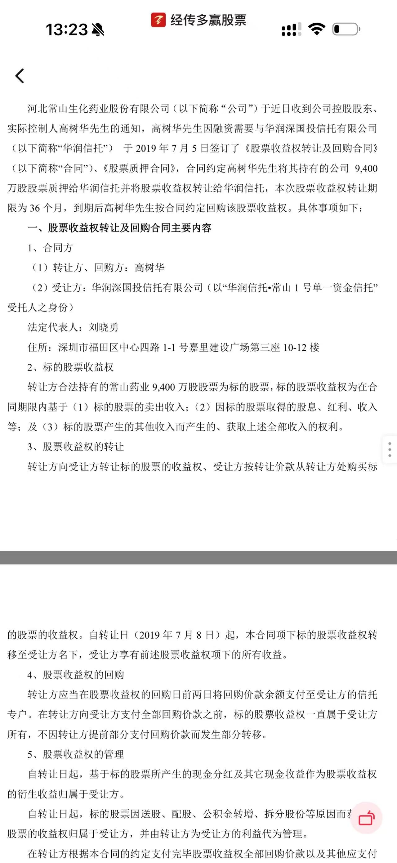 大家认真看看2019年7月9日的转让公告以及2022年7月12日的股份质押展期公告,质押期间股票收益全部归受让方。这样2026年1月22日老高解除华润的1000多万股相当于省了1个多亿解除质押,因为把股票从接近70元打压到55左右。这是不是最近大盘不错,常山一直价格下行的原因呢?