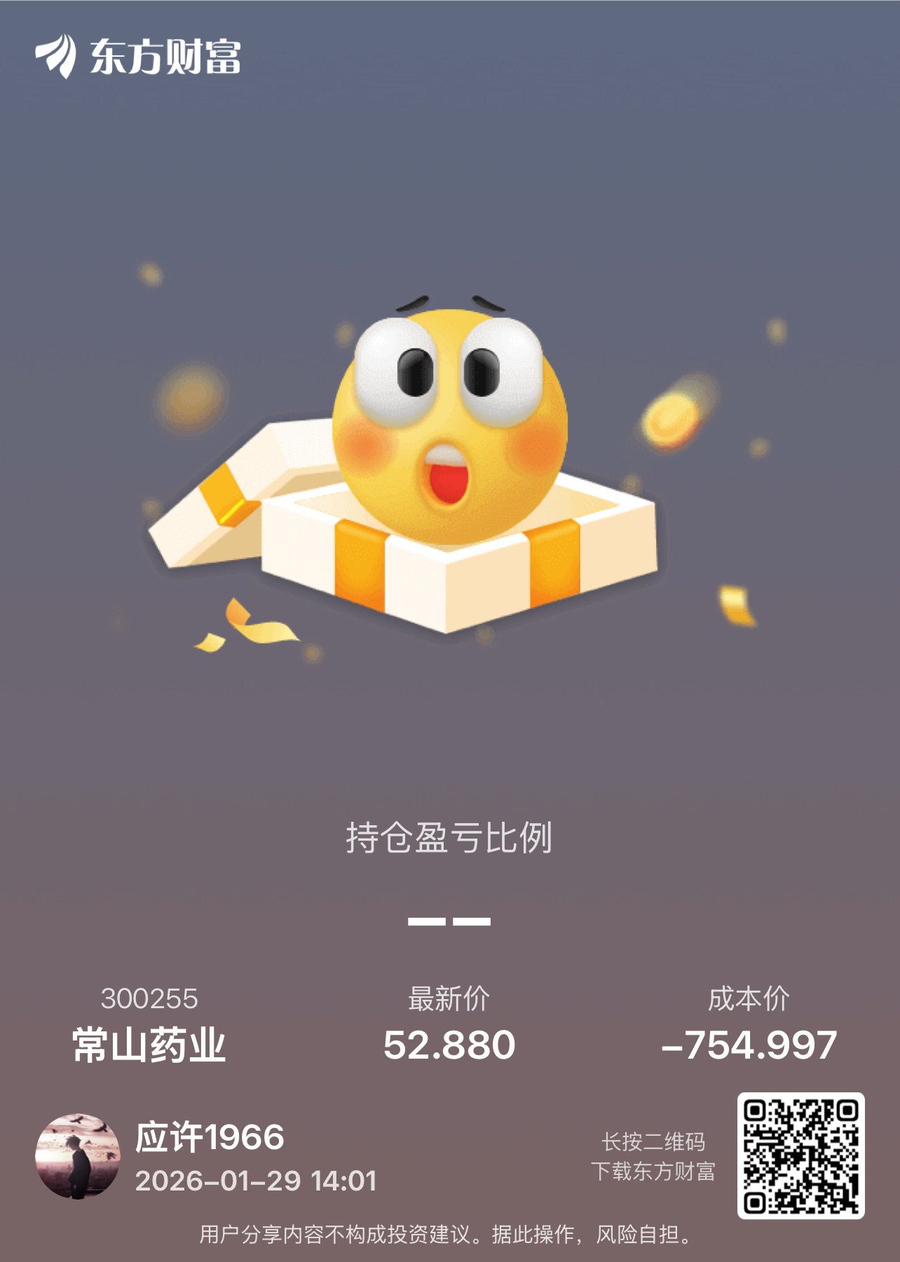 温馨提示: 1.根据《证券法》规定,禁止编造、传播虚假信息或者误导性信息,扰乱证券市场;2.用户在本社区发表的所有资料、言论等仅代表个人观点,与本网站立场无关,不对您构成任何投资建议。用户应基于自己的独立判断,自行决定证券投资并承担相应风险。《东方财富社区管理规定》