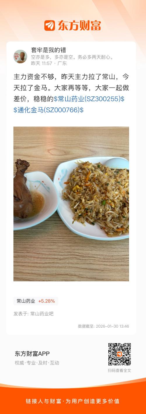 主力资金不够,昨天主力拉了常山,今天拉了金马。大家再等等,大家一起做差价,稳稳的$常山药业(SZ300255)$ $通化金马(SZ000766)$