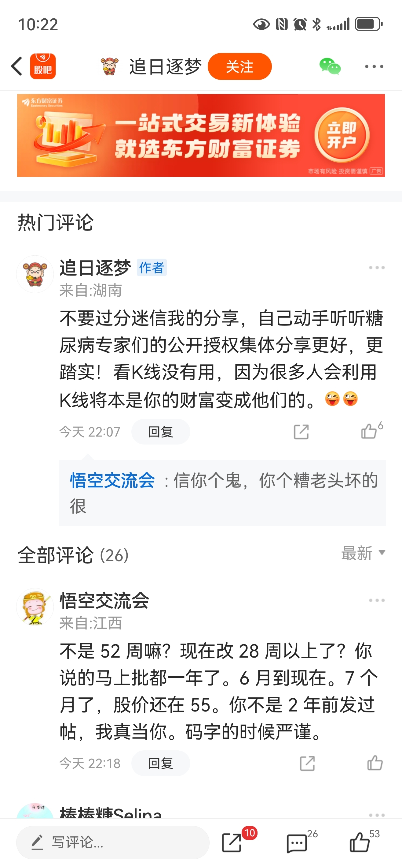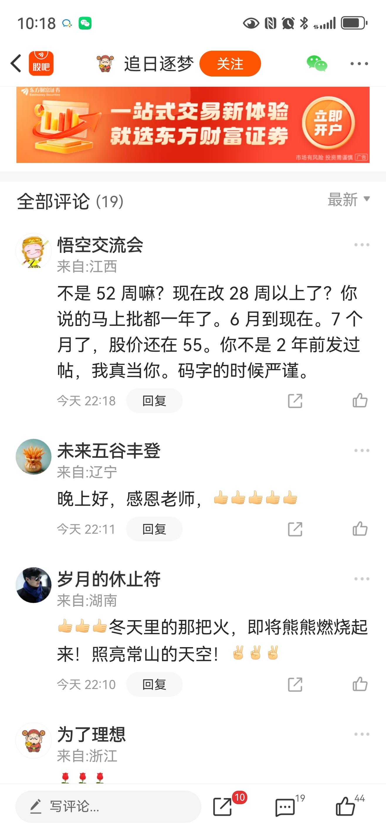 温馨提示: 1.根据《证券法》规定,禁止编造、传播虚假信息或者误导性信息,扰乱证券市场;2.用户在本社区发表的所有资料、言论等仅代表个人观点,与本网站立场无关,不对您构成任何投资建议。用户应基于自己的独立判断,自行决定证券投资并承担相应风险。《东方财富社区管理规定》