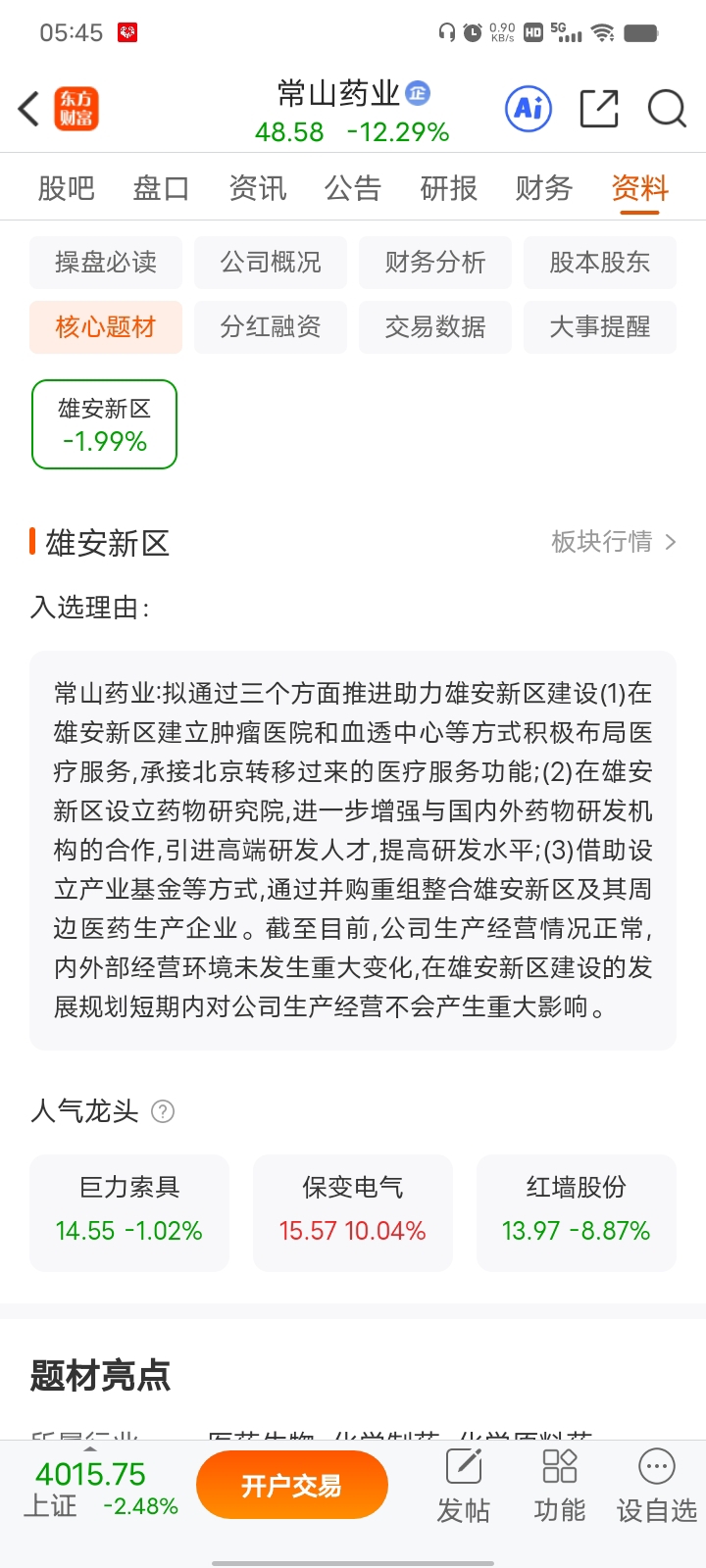 $常山药业(SZ300255)$ 这是标准的雄安新区概念