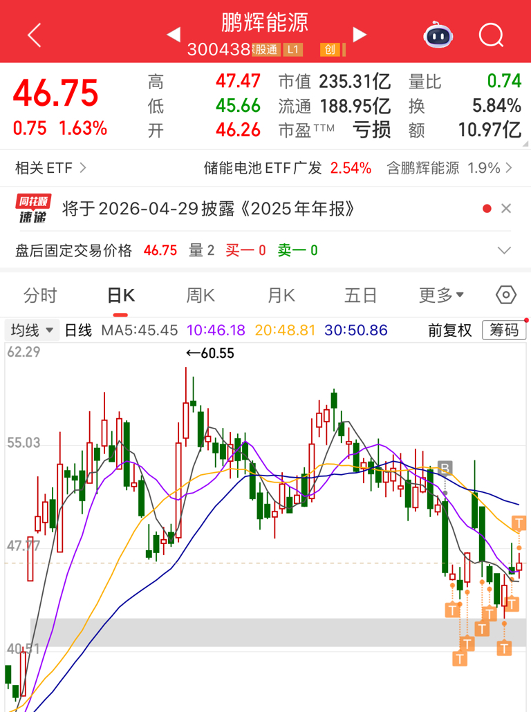 一哥介绍的股票,我50买入,现价46.7块,我一直做T,目前盈利9.5%。这个股