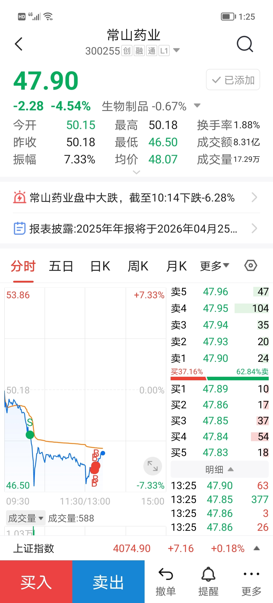 $常山药业(SZ300255)$ 苟,,,庄。下午千万别再打下来。奶的逼的。