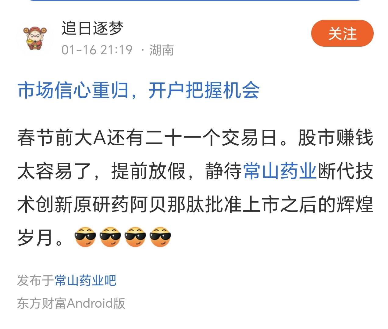 温馨提示: 1.根据《证券法》规定,禁止编造、传播虚假信息或者误导性信息,扰乱证券市场;2.用户在本社区发表的所有资料、言论等仅代表个人观点,与本网站立场无关,不对您构成任何投资建议。用户应基于自己的独立判断,自行决定证券投资并承担相应风险。《东方财富社区管理规定》