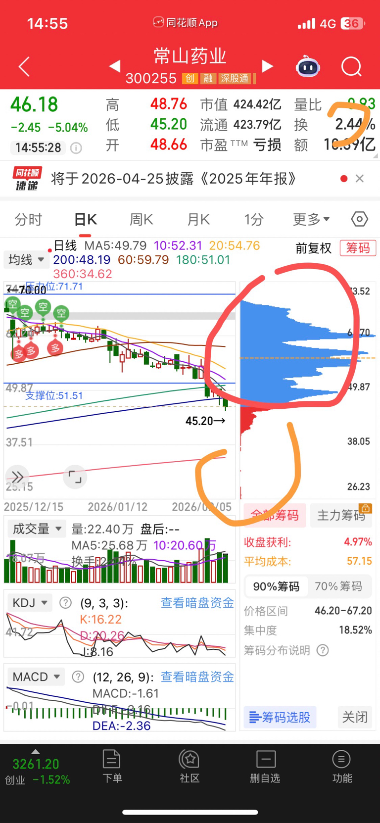 $常山药业(SZ300255)$ 全是套住,主力你够狠,盈利不足百分之5,如果有盈利你应该开心,换手2.44.套牢筹码一动不动,怎么可能是底