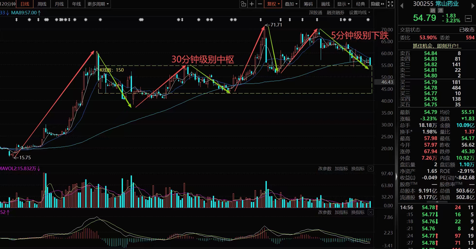 写在最后,以上对常山药业的走势结构技术分析,仅是三个子系统的其一,同时还需要时刻观察基本面及行业比价的变化,特别是基本面变化,更容易产生转折性行情!