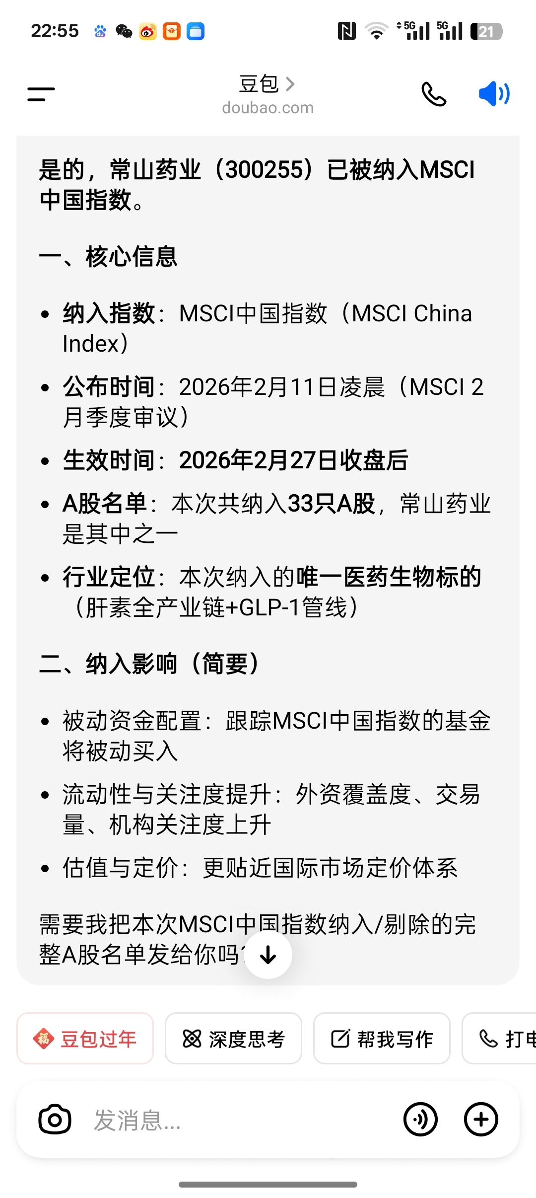 $常山药业(SZ300255)$ 不怎么问豆包,还是忍不住问问,确定常药纳入msal指数。牛牛牛