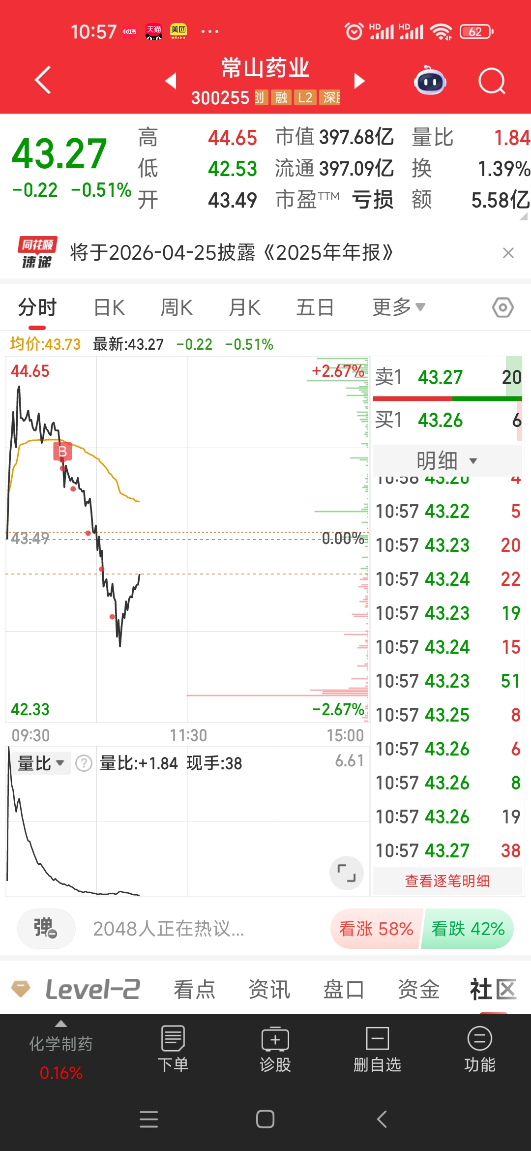 分五次买入,现在成本是43.53,你们成本是多少?