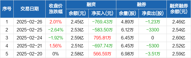 开山股份:融资净偿还769.43万元,融资余额2.45亿元(02-26)