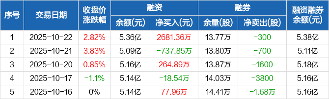 开山股份:融资余额5.36亿元,创近一年新高(10-22)