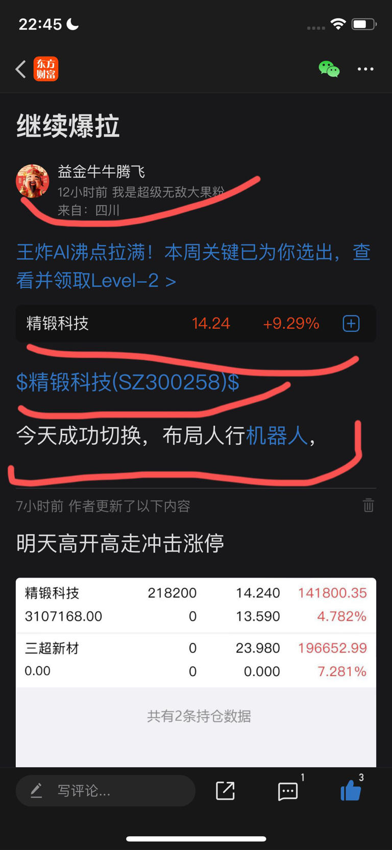 今天我十一点就发出来喊你们切换,没人信我勒,明天精锻高开跑了,我继续切换