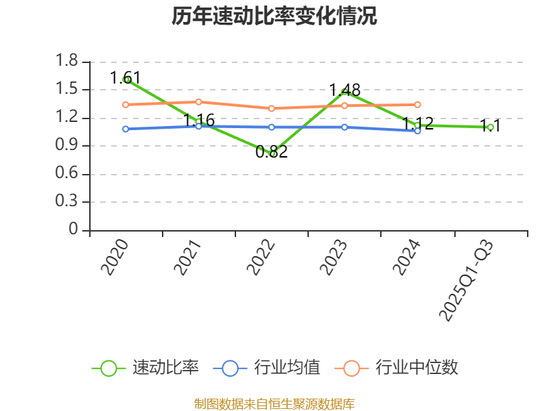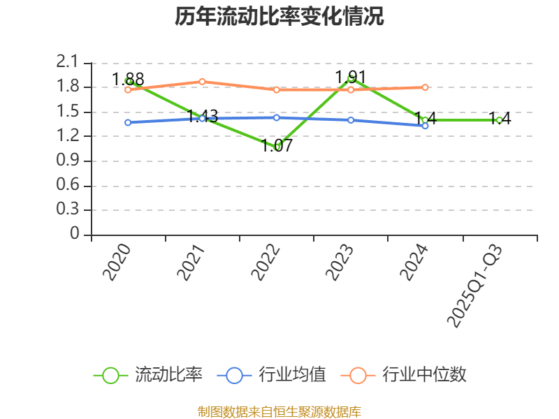 2025年前三季度,公司流动比率为1.4,速动比率为1.1。
