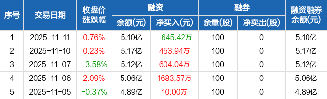 精锻科技:融资净偿还645.42万元,融资余额5.1亿元(11-11)