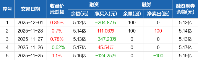 精锻科技:融资净偿还204.87万元,融资余额5.12亿元(12-01)
